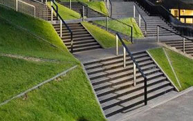 另外,就是扶手的高度和握持感对人的触觉心理也会产生影响!扶手不仅能起到给我们心里安全感的作用,面对长楼梯不至于心里发软,同时也能够在关键时刻“扶”我们一把,让我们即使跌倒也不至于从楼梯上滚落。所以没有扶手、或者扶手高度不合理楼梯更容易导致滑倒事件演变成伤害更严重的滚落事件,在人流量大的区域更有可能升级为踩踏事件。楼梯扶手的合理高度一般在80-110厘米之间,到人体腰部偏上的位置。单人通行的梯段宽度一般应为800mm900mm;双人通行的梯段宽度一般应为1000mm--1200mm;四人通行梯段中间应加设扶手,这些措施可以最大程度让扶手在关键时刻发挥作用。