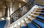 专家解析:餐饮、洗浴、泳池等场所楼梯防滑是必要功课,如果误用了普通楼梯材料没有做防滑处理,那就是设计者的责任了。湿滑的空间楼梯踏步一定要使用防滑效果好的毛面石材、或防滑瓷砖;如果是玻璃通常需要用喷砂去处理;如果是普通大理石或是瓷砖可以用切缝,或者是把表面做成毛面,有点颗粒感,来增加它的摩擦度。当然还有踏步的防滑条也是必须具备的。