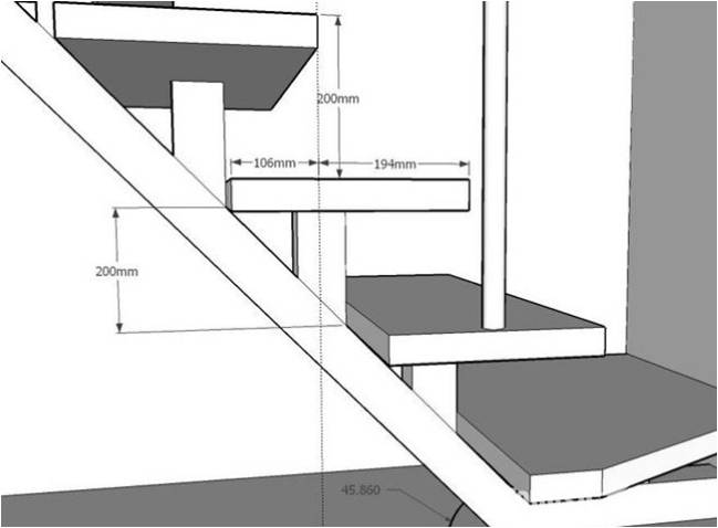 楼梯踏步宽度300mm,高度150mm较为舒适,根据实际楼层高度可作微调。但踏步高度超过175mm上楼梯就很不舒服。对于楼梯的设计可参阅《建筑楼梯设计规范》中的 6.7 楼梯设计,这是建筑规范,希望各位设计师在实际操作中应严格遵照国家规范!才能确保使用者的安全。