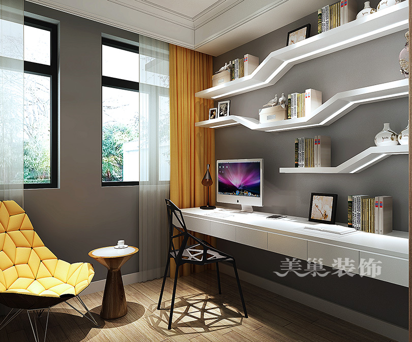 海马公园现代时尚装修样板间,大平层书房书架