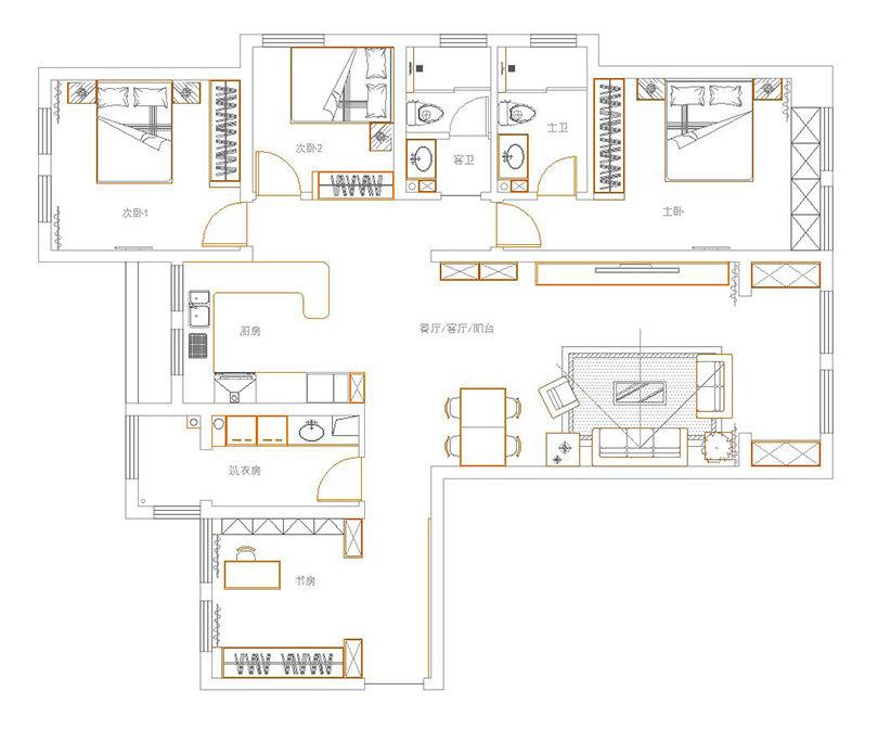 海马公园160平四室两厅户型装修设计平面布局——郑州美巢装饰