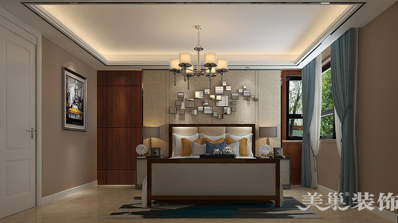 郑州亚星盛世154平3+1户型装修案例-主卧整墙衣柜很实用,案例出自美巢装饰,典型的3+1户型,对于想要更多房间和收纳设计的家庭来说,客厅虽然很大,但是并不想那么的凌乱,保持这大户人家的大气与历练还是很必须的,这样就要求每个功能区的自给自足了,厨房与卧室的收纳显得尤其重要。